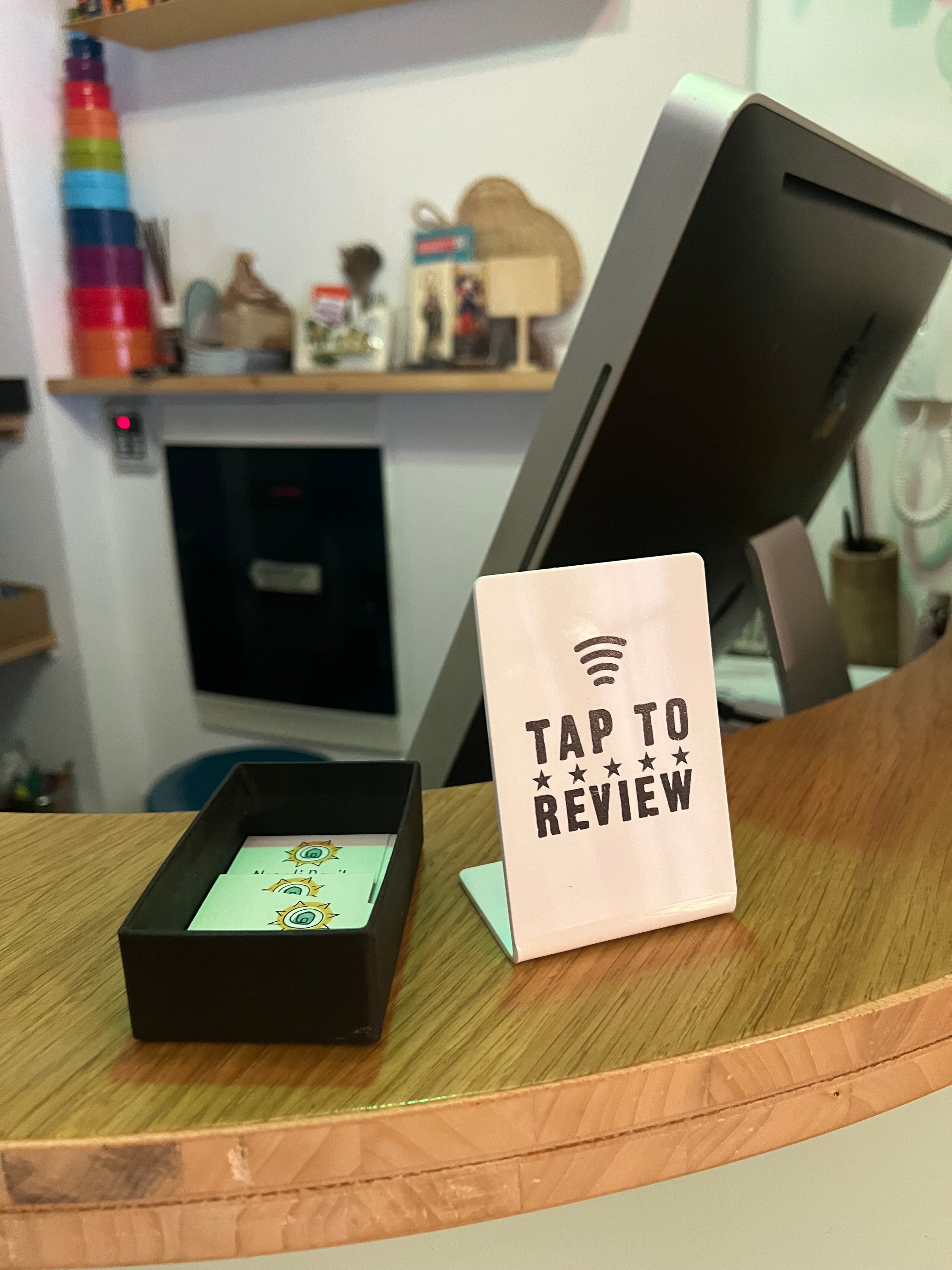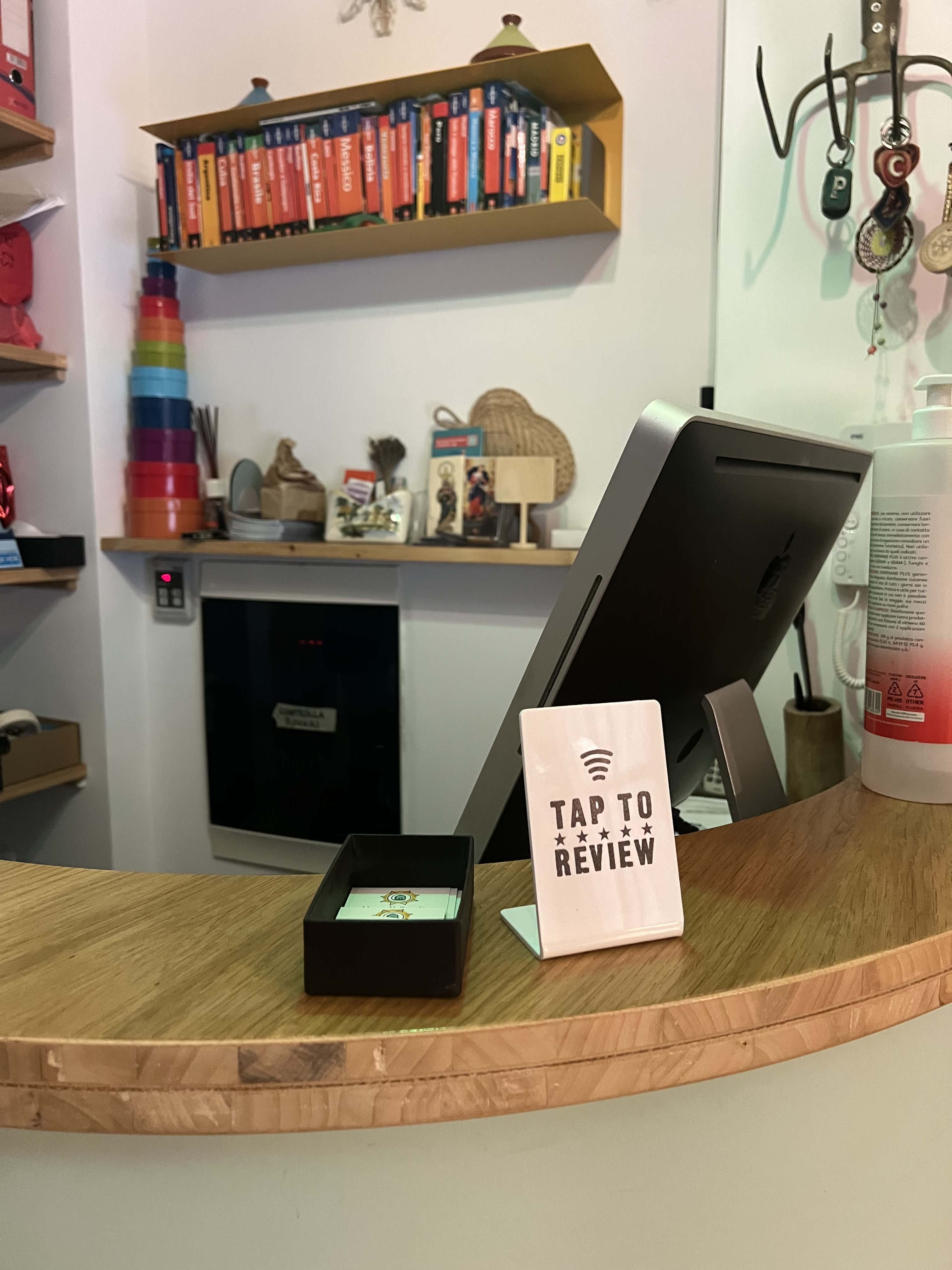 Display the card where your customers naturally pause, your payment counter, or handover point. With one tap, they’re taken straight to your Google review page. It’s the most effortless way to turn real-world interactions into online reputation, building social proof, improving visibility, and growing your business one tap at a time, in seconds!