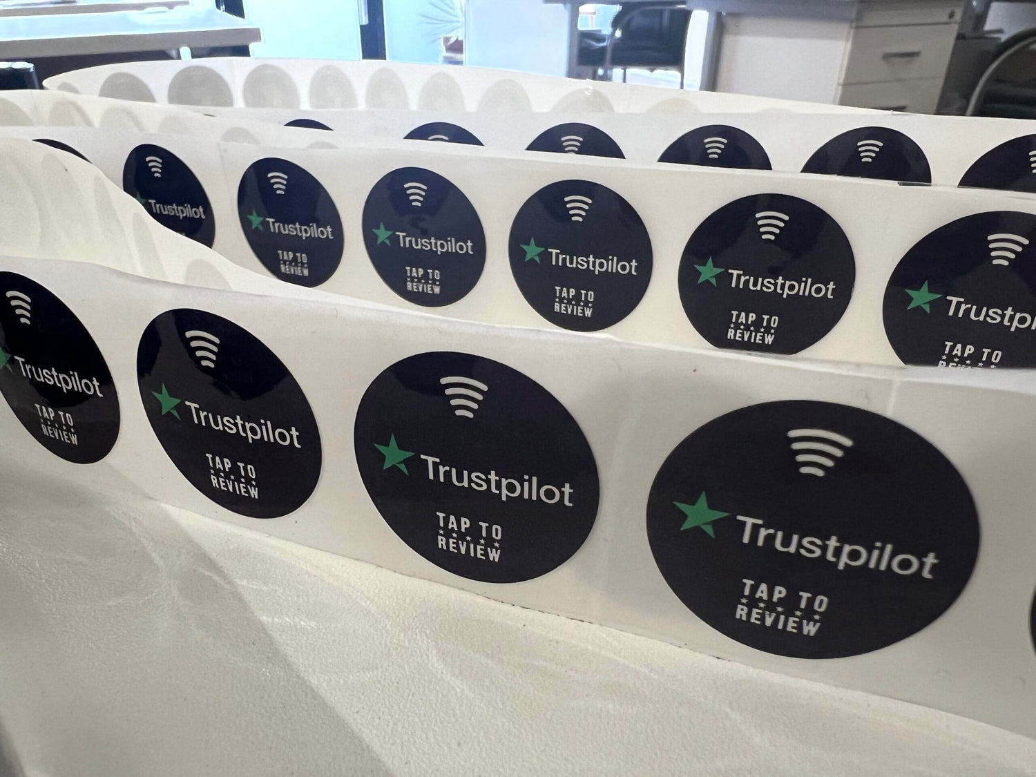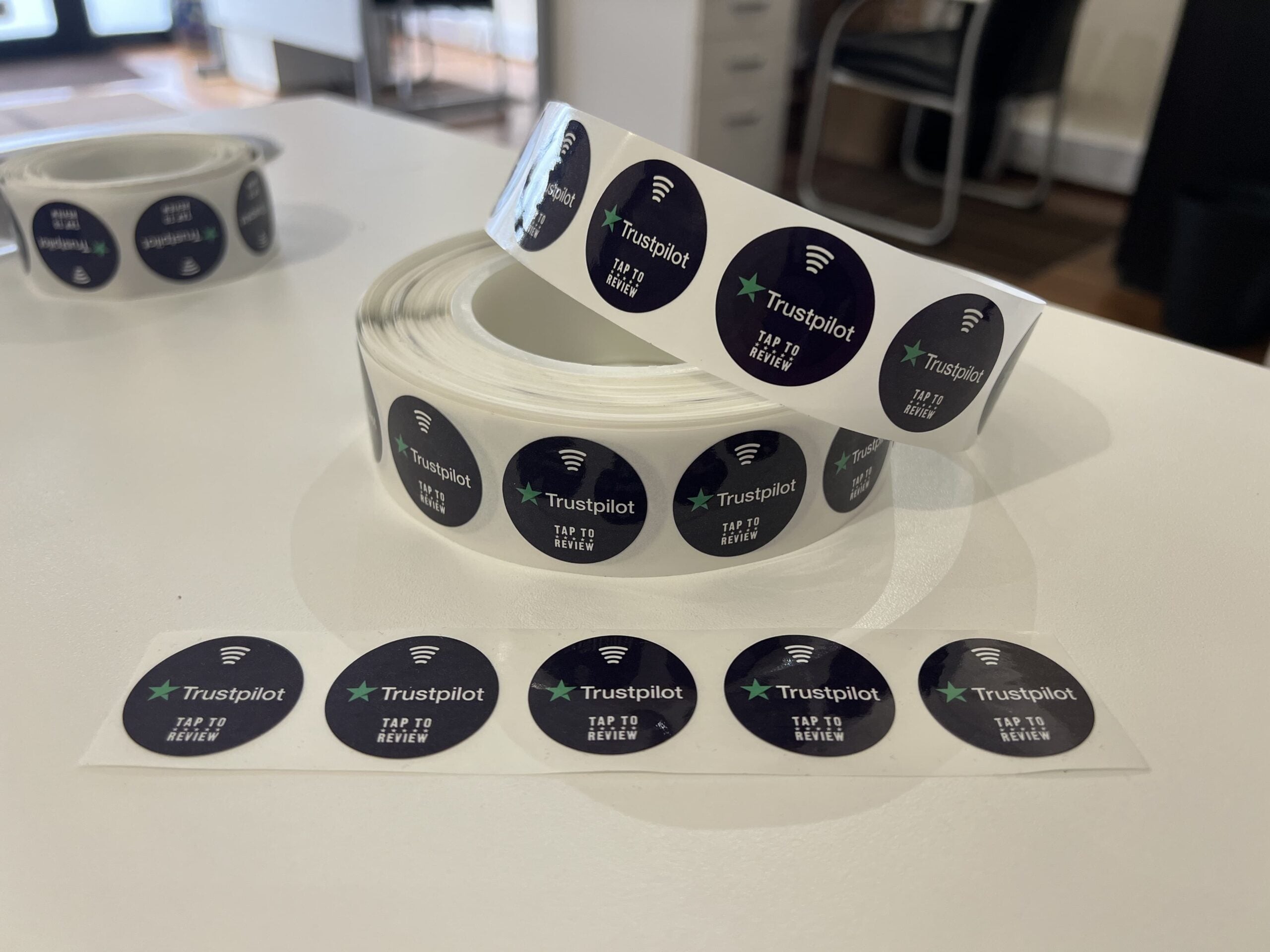 What types of business use Trustpilot NFC Delivery Stickers to increase their review count?